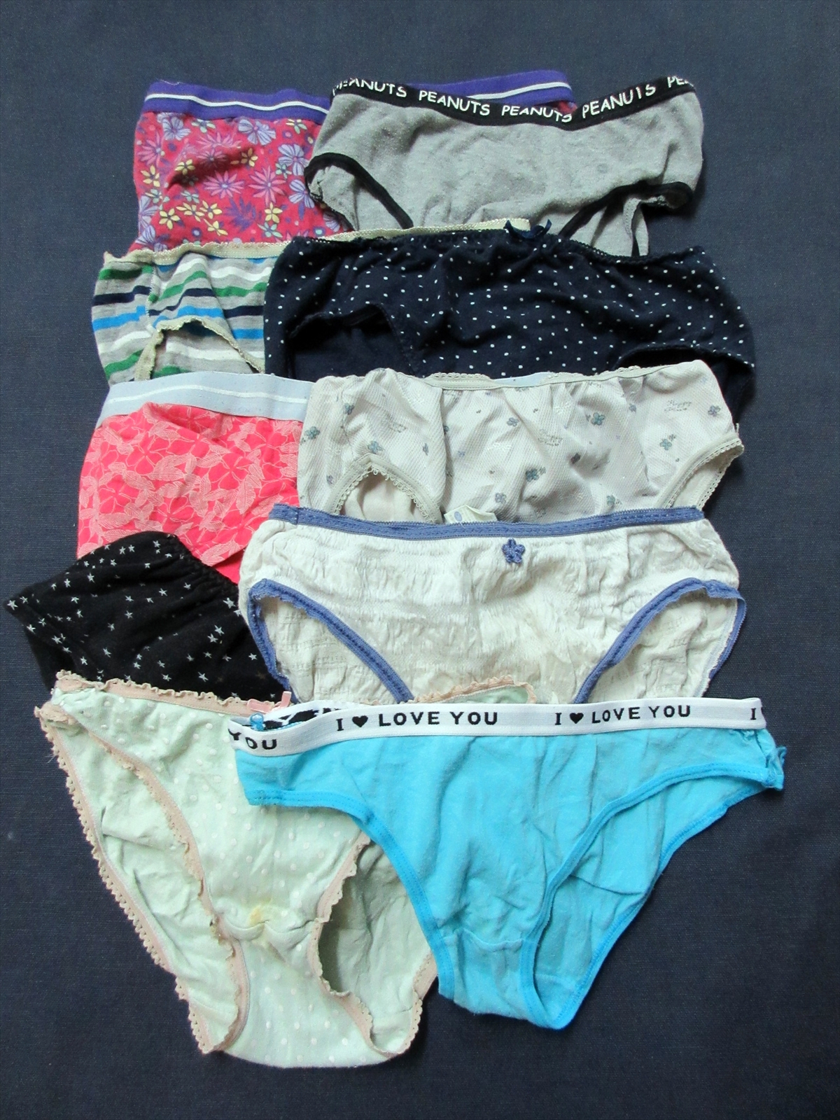 *繰り返し着用して、汚れがひどかったり、伸びていたりしている、使い込み度・強!のパンティーです!