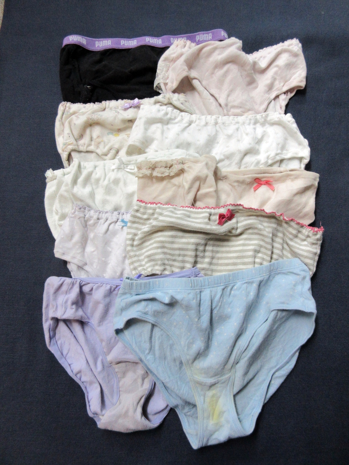 *繰り返し着用して、汚れがひどかったり、伸びていたりしている、使い込み度・強!のパンティーです!